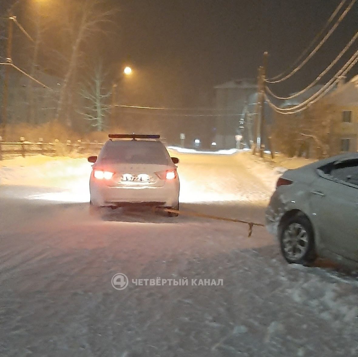 На помощь пришли сотрудники ДПС. Инспекторы не остались равнодушными и помогли вытащить застрявшую машину. К ним присоединились и проезжавшие мимо уральцы.