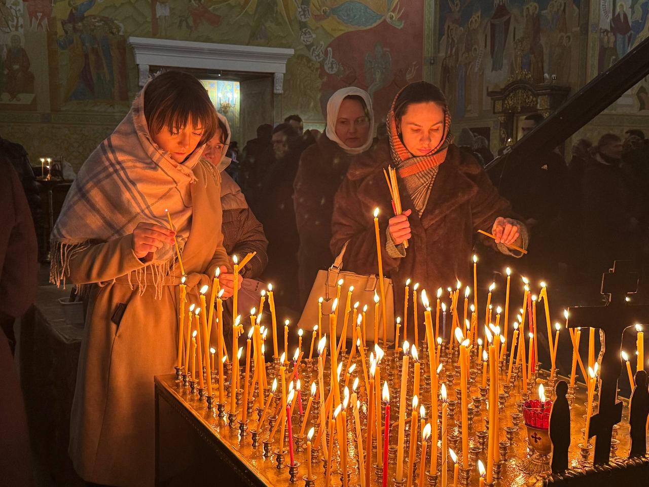На службу пришли сотни людей. Многие привели с собой детей.