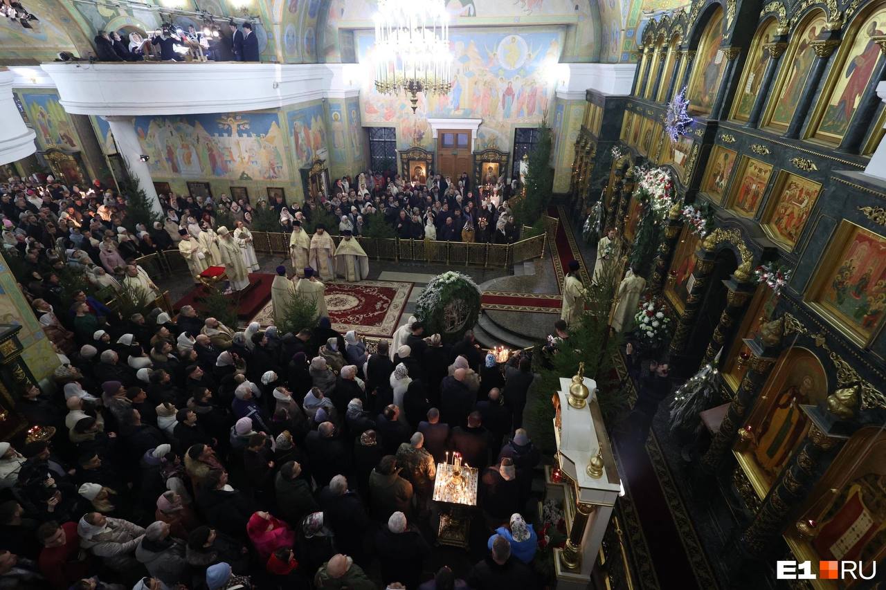 Ночью здесь провел божественную литургию митрополит Екатеринбургский и Верхотурский Евгений. В соборе собрались тысячи верующих.