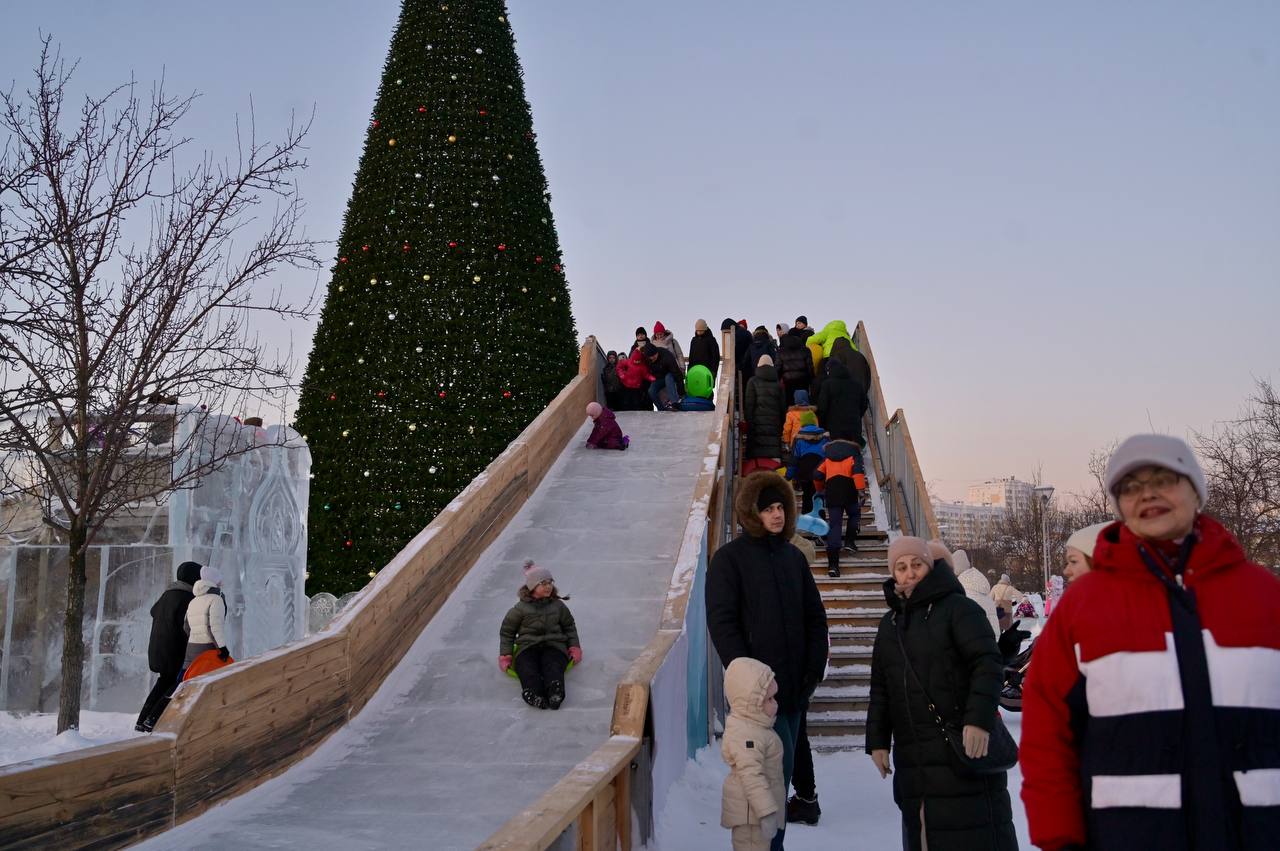 Одними из главных элементов ледового городка, конечно, являются горки. Дети катаются с удовольствием. Их смех приносит всем ощущение радости и праздника. Больше ярких эмоций и новогоднего волшебства — в фоторепортаже «ОГ».