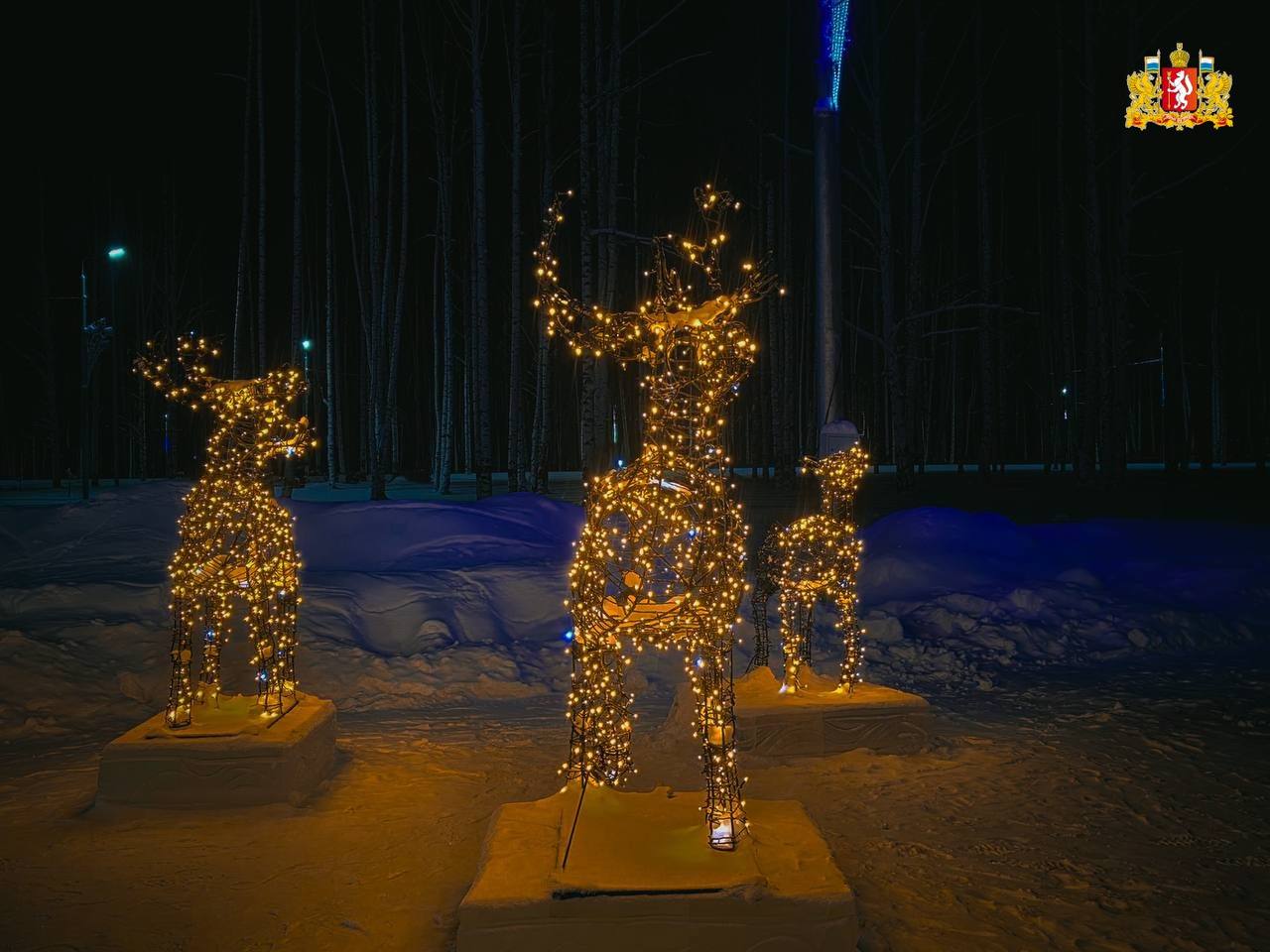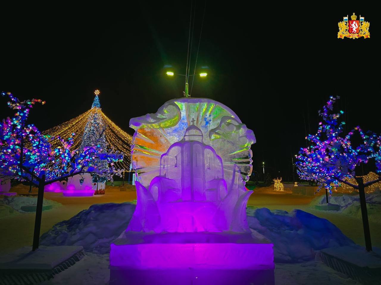 Верхняя ПышмаЛедовый городок в Верхней Пышме расположен в Манином парке. По вечерам здесь разноцветными огнями сияет красавица-ёлка, а также подсвечены иллюминацией фигуры изо льда — Дед Мороз со Снегурочкой, самовар с чашками, упряжка с лошадьми...