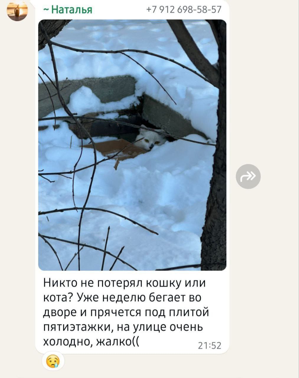 * Неприспособленные к уличной жизни породистые кошки гибнут от холода и голода.