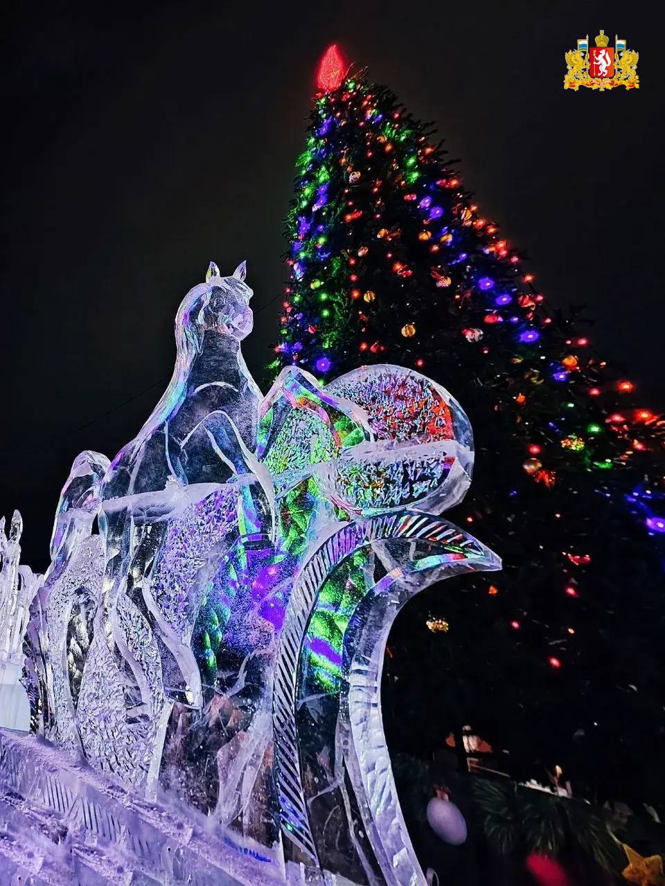Делимся кадрами праздничного убранства Ирбита. Одной из «изюминок» в оформлении здесь стала светящаяся конструкция «Часы Фаберже» длиной 7 метров. Но самое главное – в городе была установлена новая новогодняя ель, она выше предыдущей на 3 метра.