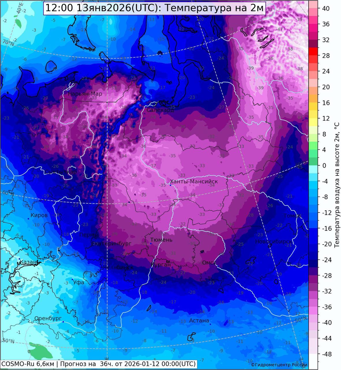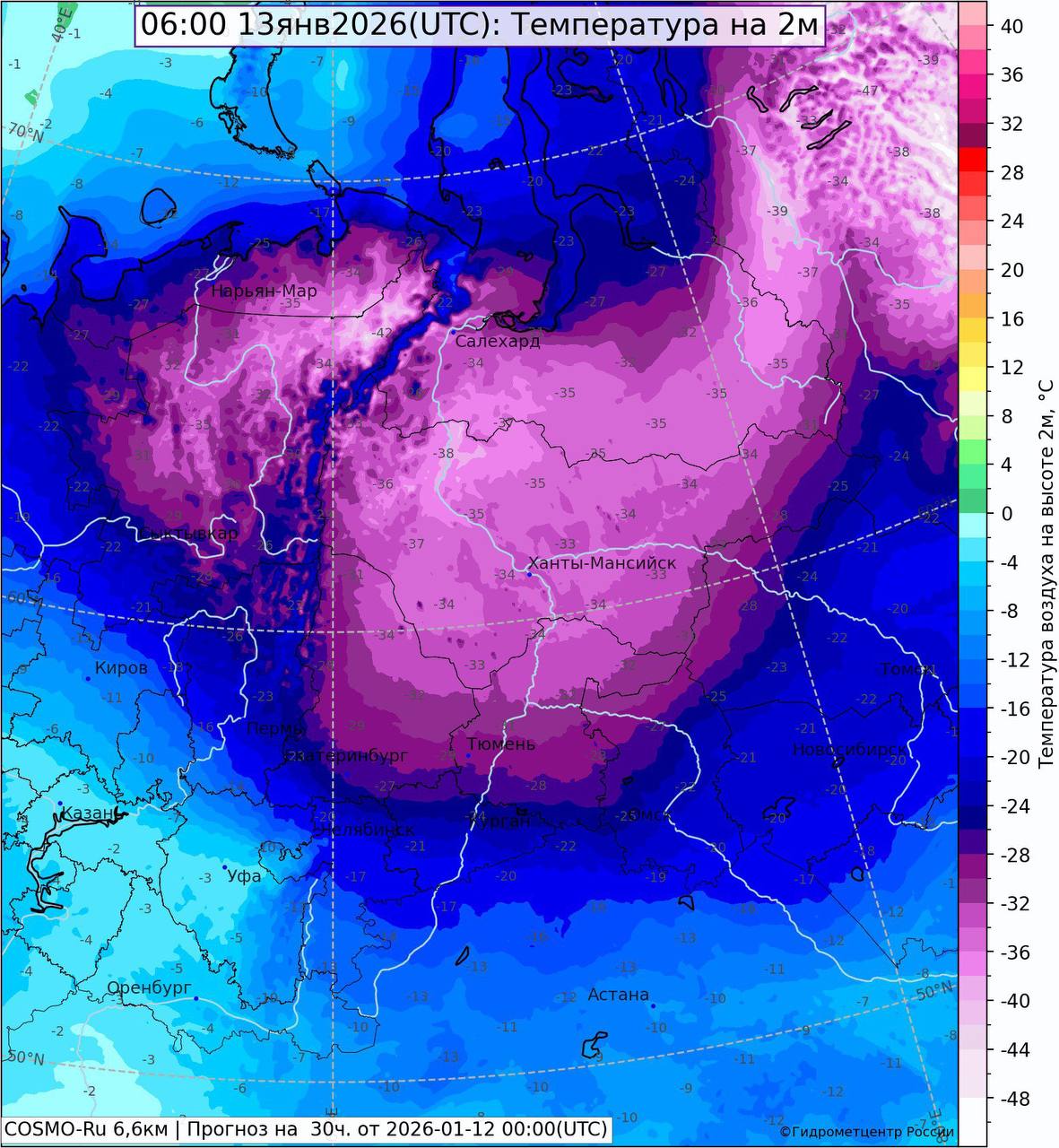 На восточную периферию антициклона поступит ультраполярный холод с Карского моря, поэтому в восточных районах области крепкий мороз продержится до выходных дней.