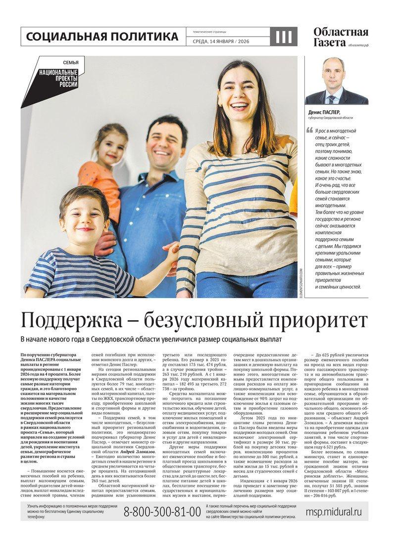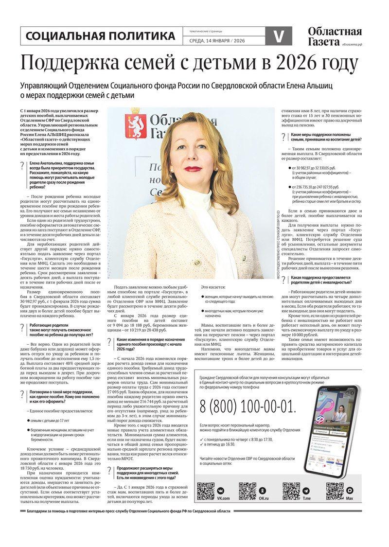 Сегодня в новом номере «Областной газеты» вышли тематические страницы, посвященные социальной политике Среднего Урала