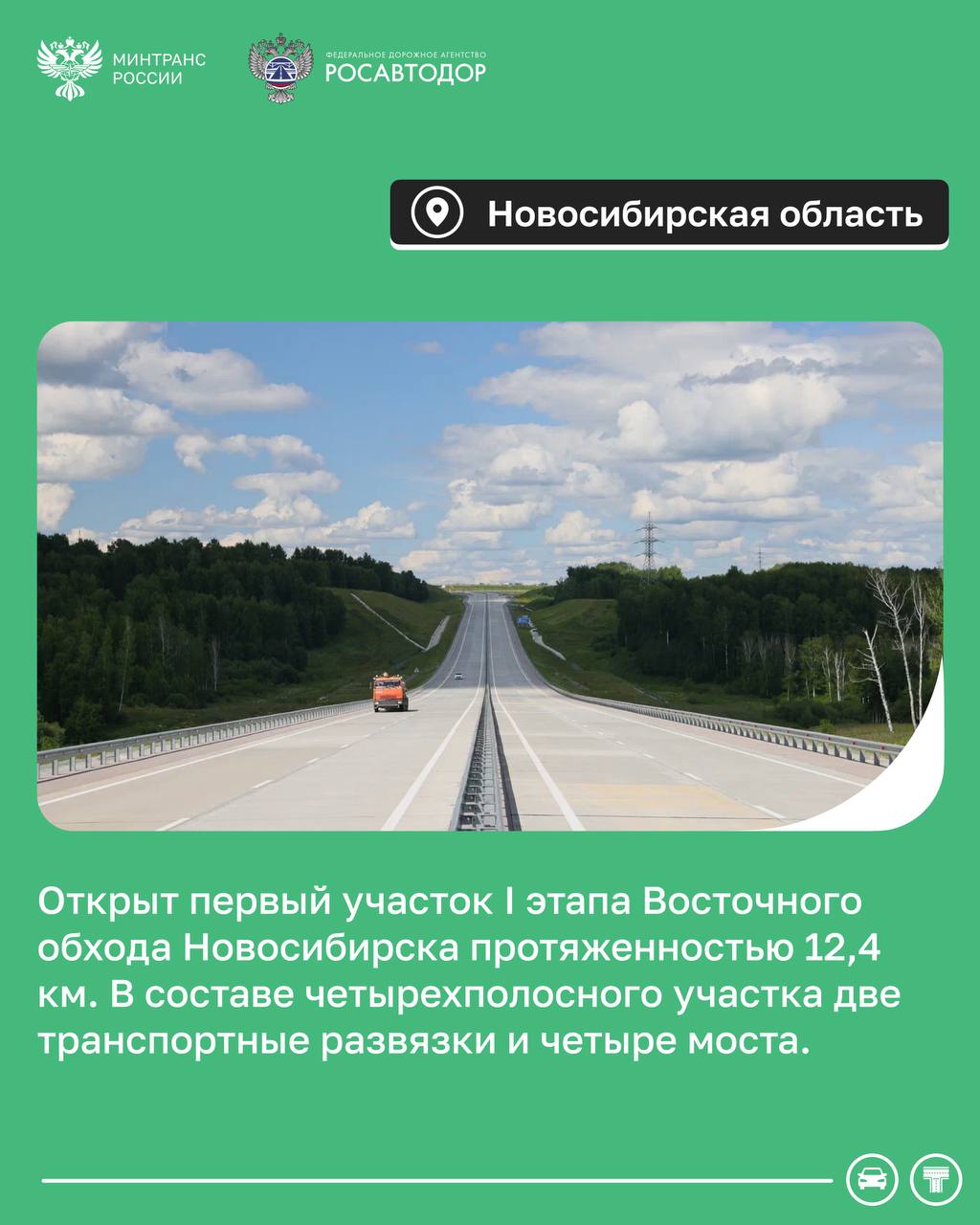 Работы на трассах вели специалисты подведомственного Минтрансу Росавтодора. Открыто порядка 29 новых значимых объектов. Среди них обход Богдановича в Свердловской области, реконструированный участок трассы Р-504 «Колыма» в Якутии, транспортная развязка на в Мурманске на трассе подъезд к Североморску и другие.