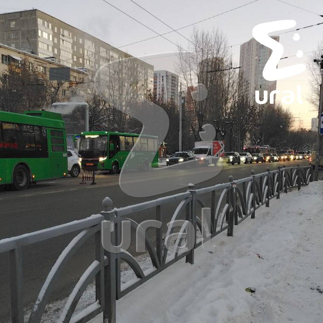 Контактный провод троллейбуса вспыхнул в Екатеринбурге. Вероятно, из-за холода.