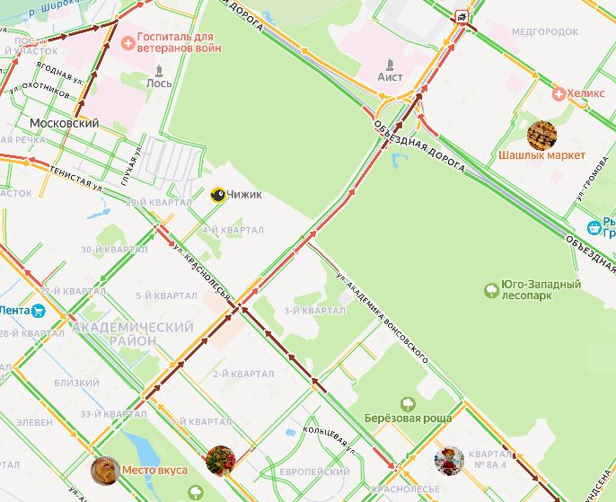 На выезде из Академического гигантская пробка
