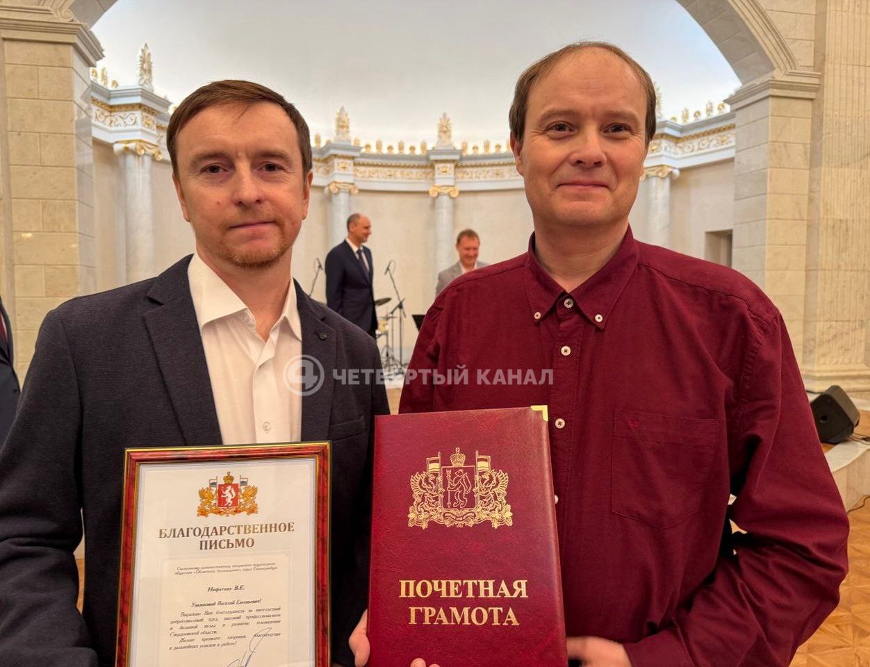 В честь Дня российской печати глава региона Денис Паслер вручил награды лучшим представителям СМИ Свердловской области за вклад в развитие информационного пространства. Среди отмеченных — оператор 4 канала Евгений Лапидус и системный администратор Областного телевидения Василий Нифатов.
