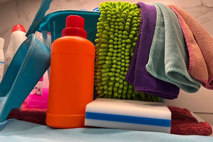 Понадобится белизна, удобная емкость, перчатки и губка. Хорошо смочите губку в белизне и протрите пятно на потолке. Пятна хорошо пропитайте белизной.