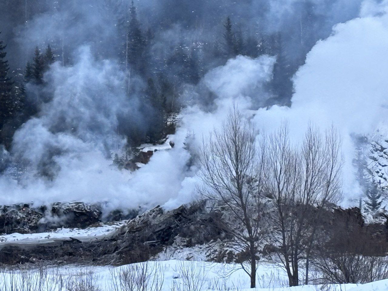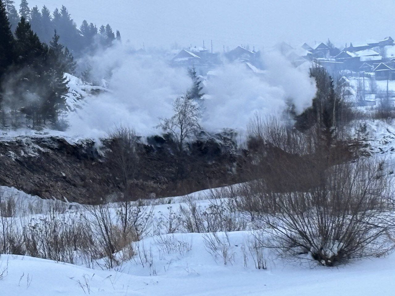 Свежие фото горящей свалки в поселке Верхние Серги Свердловской области. Который день жители дышат ядовитой вонью.