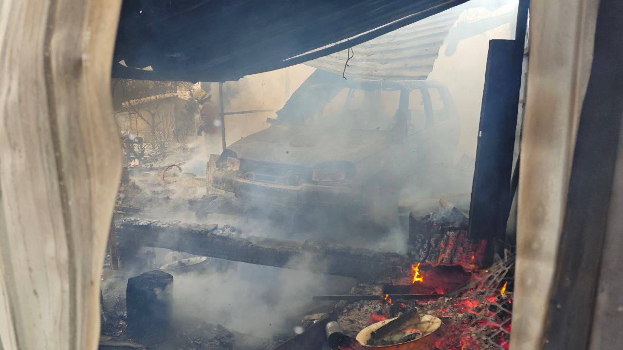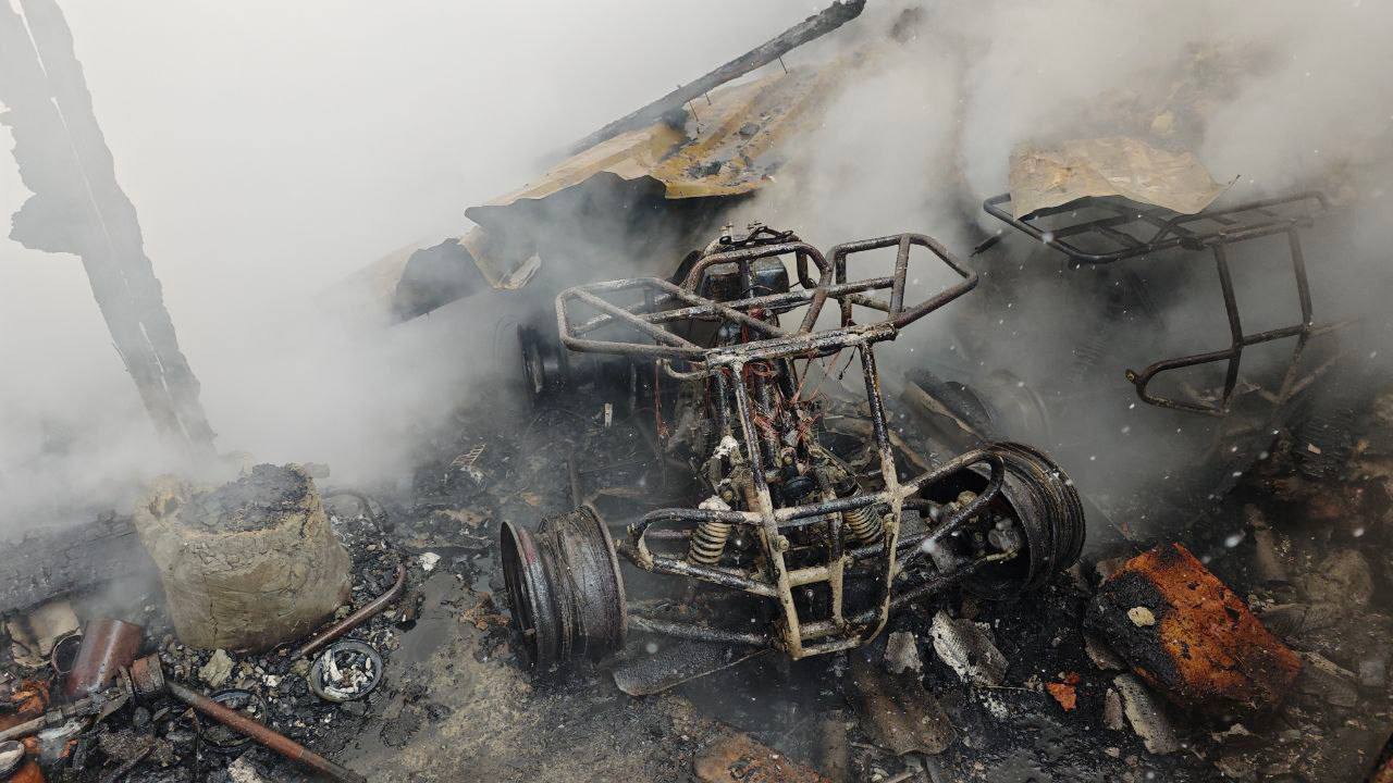 В результате пожара в гараже сгорели автомобиль, два квадроцикла и мотоцикл.