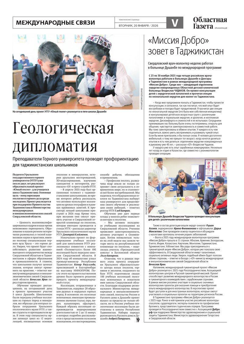 Сегодня в новом номере «Областной газеты» вышли тематические страницы, посвященные международным связям Свердловской области