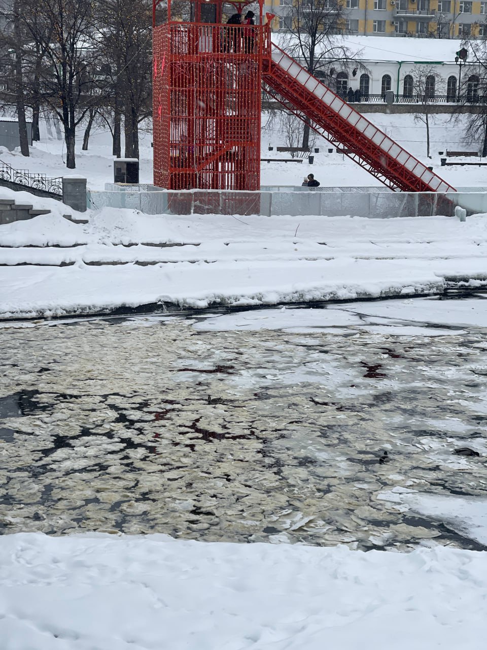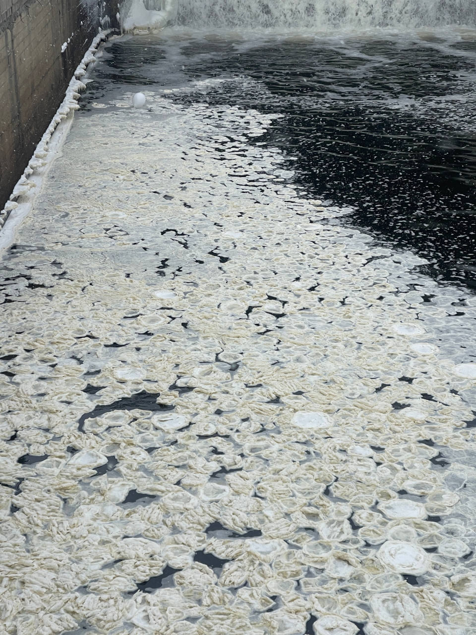 Заледеневшую пену, похожую на любимое уральцами блюдо заметили горожане на городском пруду