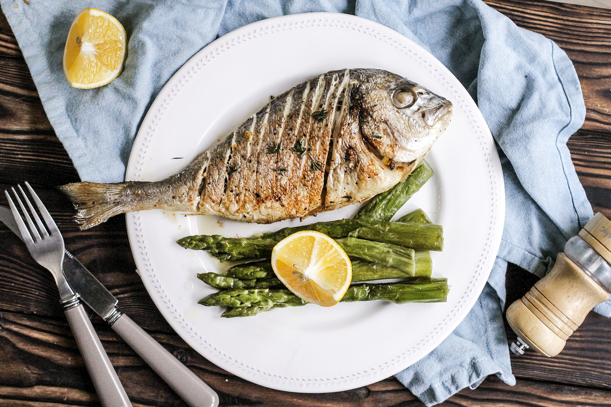 Дорадо со спаржей стир-фрай и тимьяномДорадо со спаржей стир-фрай и тимьяном