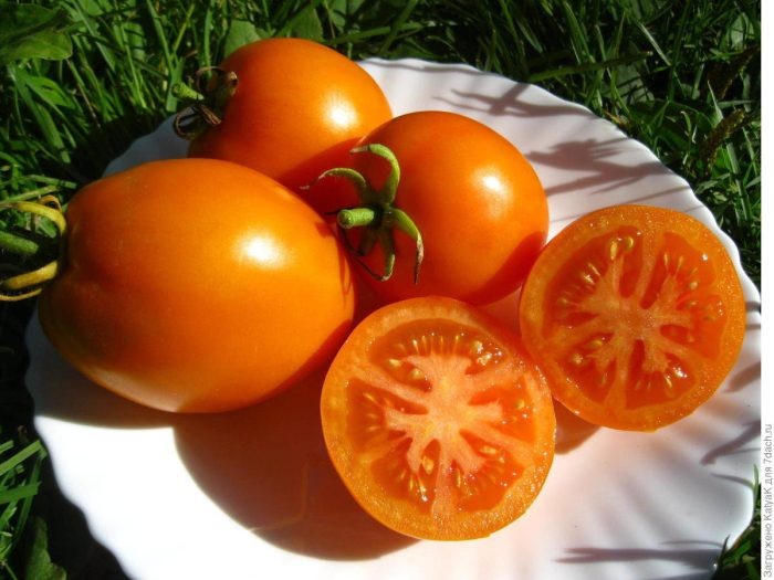 Плоды имеют обратнояйцевидную форму, их масса варьируется от 120 до 140 граммов, что делает их подходящими для цельноплодного консервирования. Мякоть плотная и сладкая, что обеспечивает отличные вкусовые качества и высокое содержание бета-каротина.