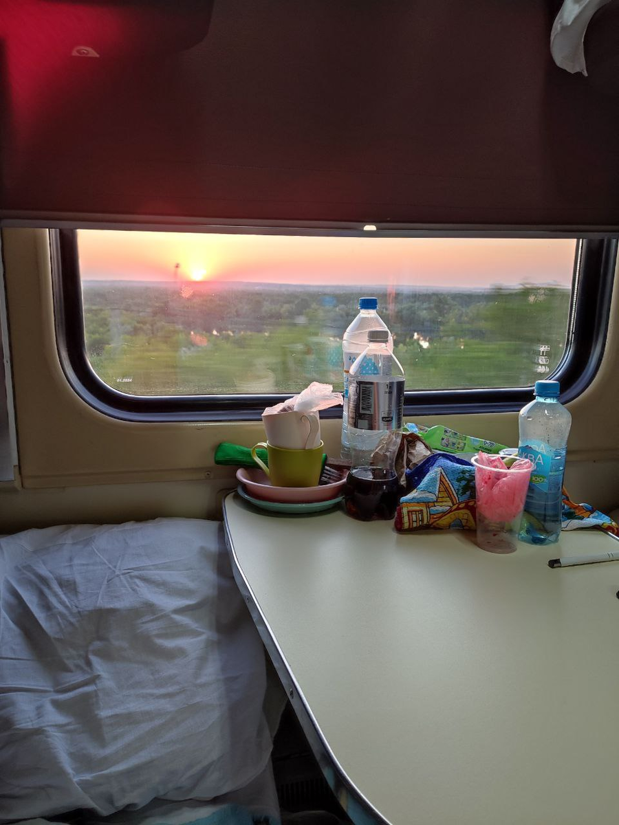 Начнем с самого важного — воды. В этом году в дорогу было взято шесть бутылок по 0,5 л и одна 1,5 л для двоих. Вокруг много людей, и гигиена играет важную роль, поэтому дополнительно была куплена 1 л бутылка колы, чтобы оставаться здоровыми в условиях общих вагонов. На протяжении суток почти вся вода была выпита, а на выходе оставалась всего одна полулитровая бутылочка. В качестве дополнительного аккумулятора холода заморожены три бутылки воды.