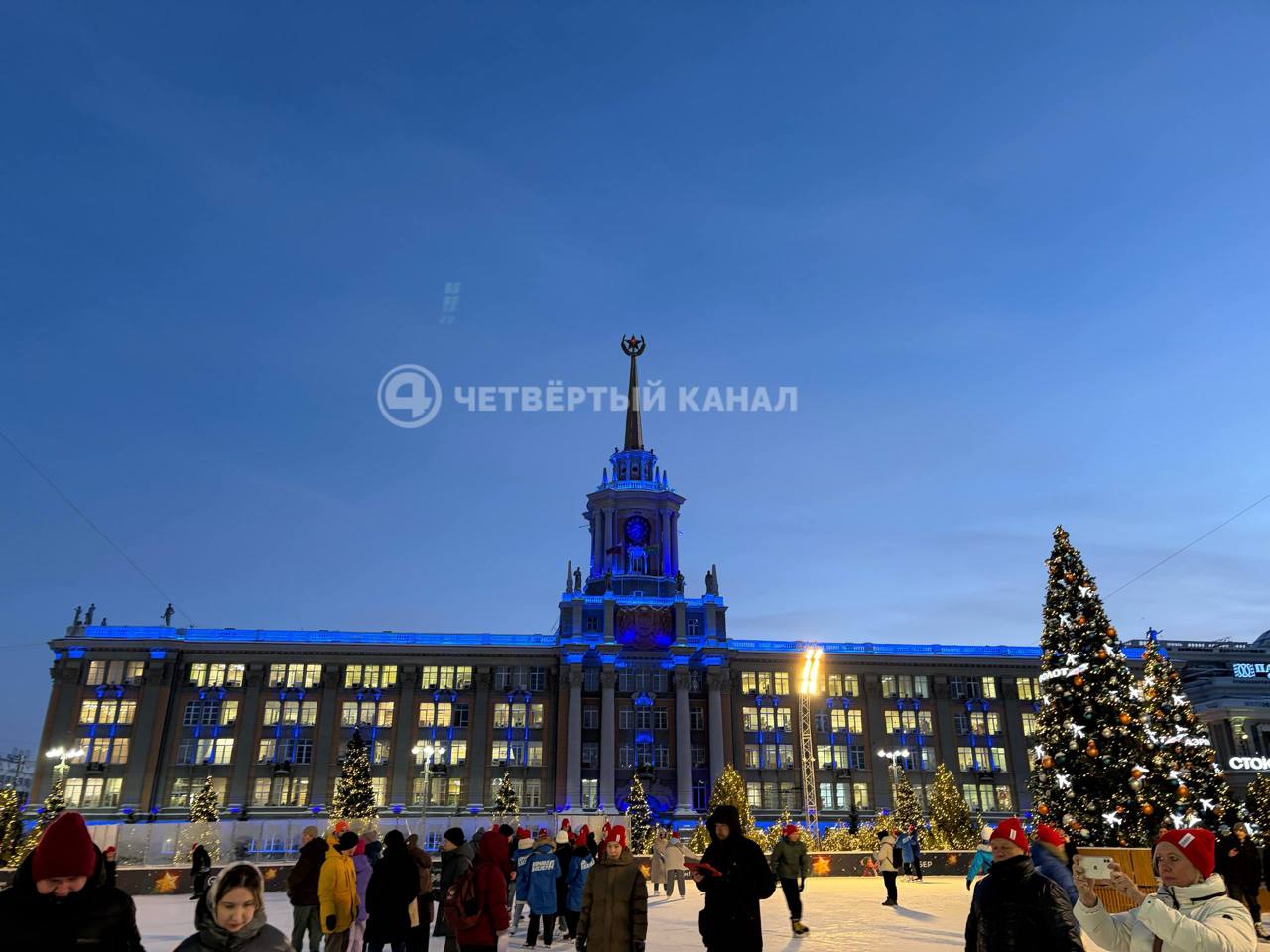 На «Катке на Площади» празднуют День студента: 200 лучших учащихся Екатеринбурга бесплатно катаются на коньках. Для ребят устроили квесты, творческие задания и провели розыгрыш сувениров. Кульминацией стало самое масштабное гендер-пати: здание мэрии подсветили синим цветом — в семье аспирантов УрФУ, Олега и Елены Токаревых, будет мальчик!