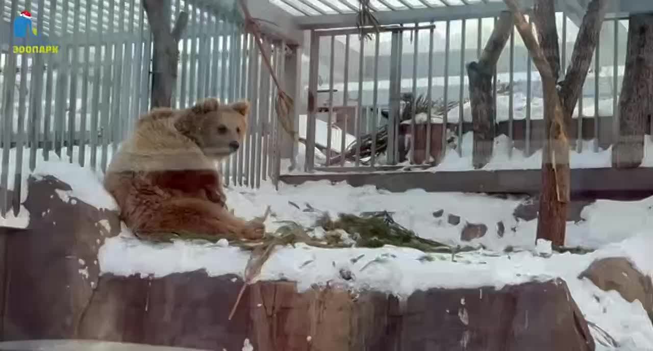 Жизнь в зоопарке отличается от дикой природы — зима тут проходит гораздо легче, и молодая активная медведица, похоже, не видит смысла прерывать игры на несколько месяцев, — рассказали в зоопарке.