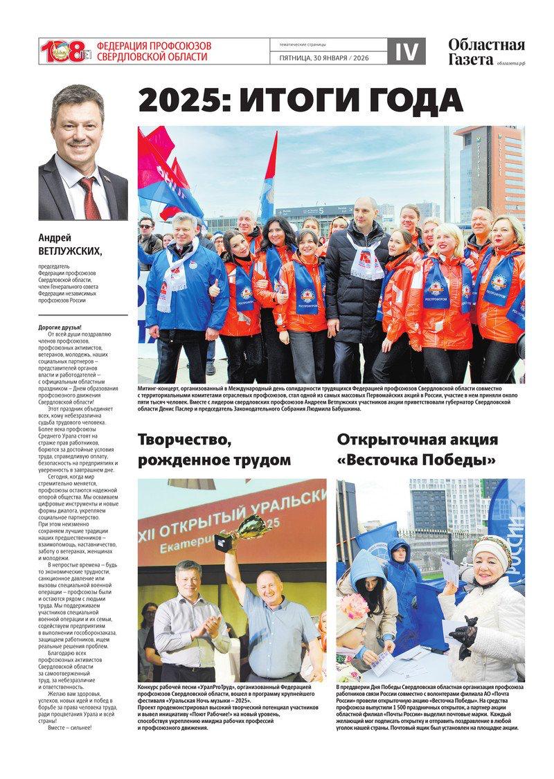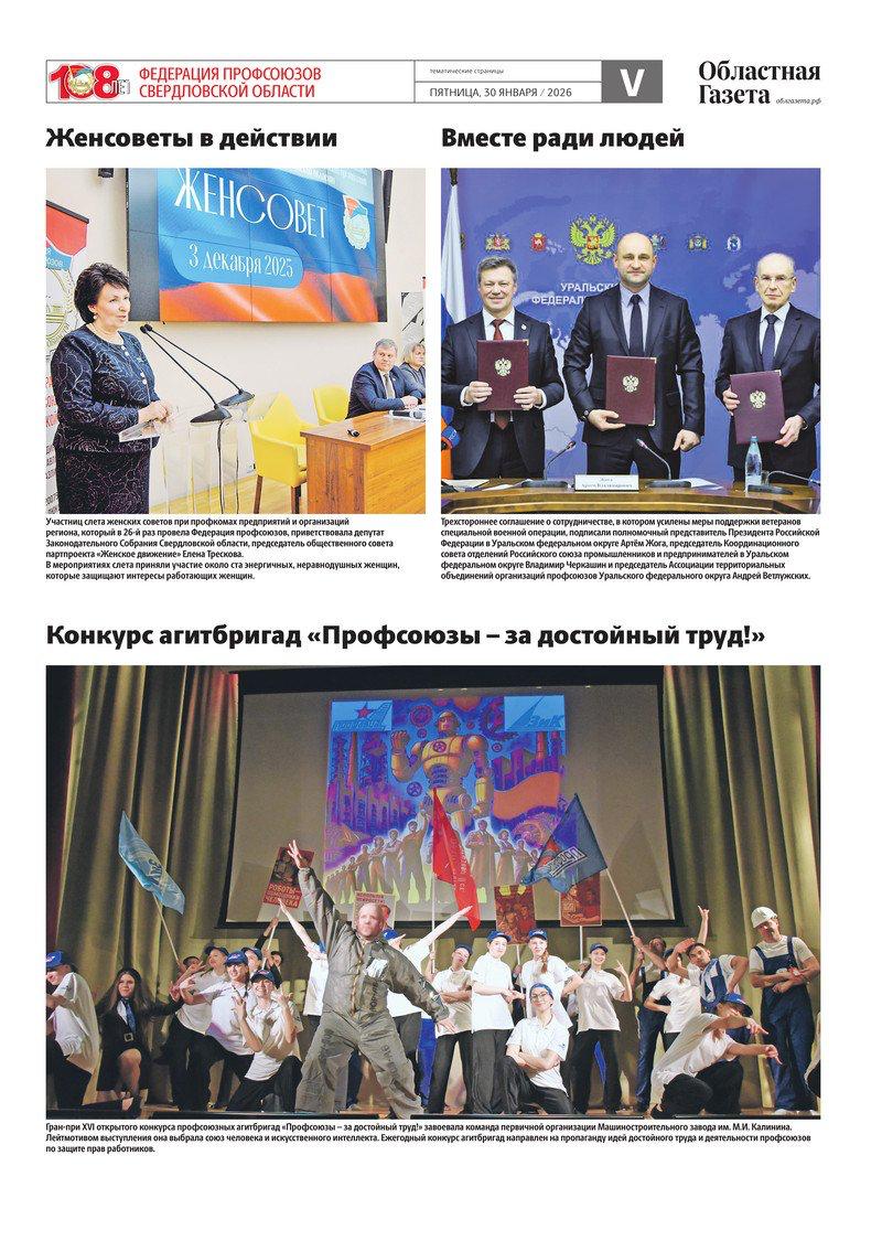 Сегодня в новом номере «Областной газеты» вышли тематические страницы, посвященные Дню образования профсоюзного движения в Свердловской области, который отмечается 1 февраля