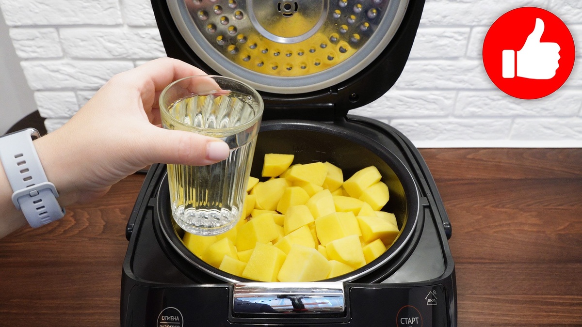 После этого следует добавить специи и горячую воду, затем – картофель, который также нужно перемешать. Блюдо готовится на режиме «Рис/Крупы/Плов» в течение 45 минут, и в результате получается невероятно ароматный и вкусный обед.