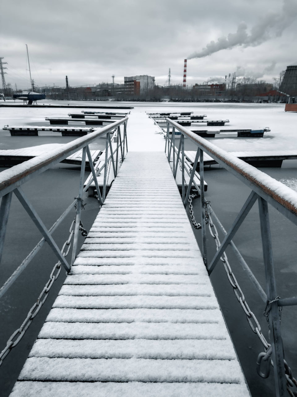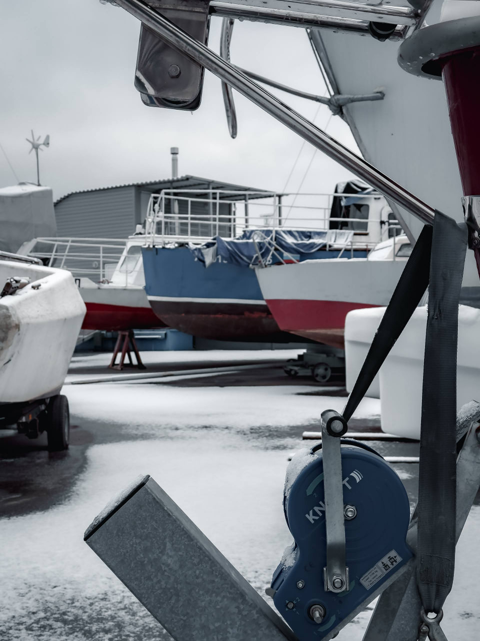 Фотограф запечатлел прохладный день на берегу среди замерзших лодок и яхт. Кадры получились поистине завораживающими.