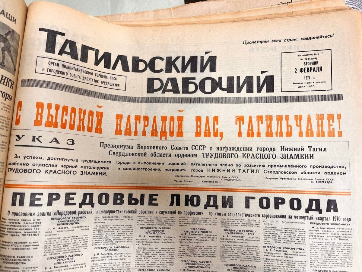 Газета Тагильский рабочий поздравила тагильчан с этим знаковым событием в выпуске от 2 февраля 1971 года. Экземпляр хранится в редакции. Кстати, в этом году газета отмечает 120-летие!