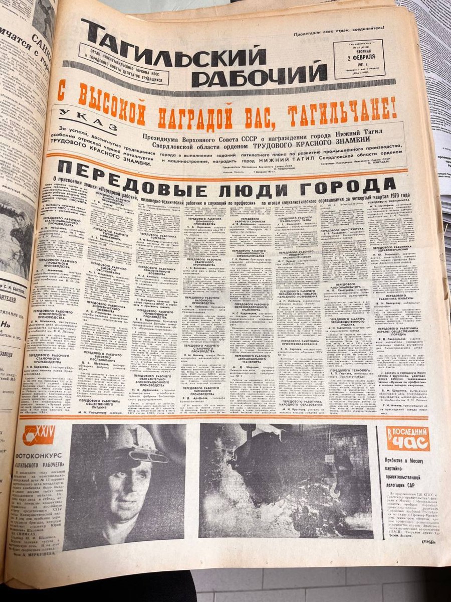 Владислав Пинаев: #ГородТрудовойДоблести. 55 лет назад, 1 февраля 1971 года, Нижний Тагил был награжден орденом Трудового Красного Знамени за успехи, достигнутые трудящимися города в выполнении пятилетнего плана по развитию...