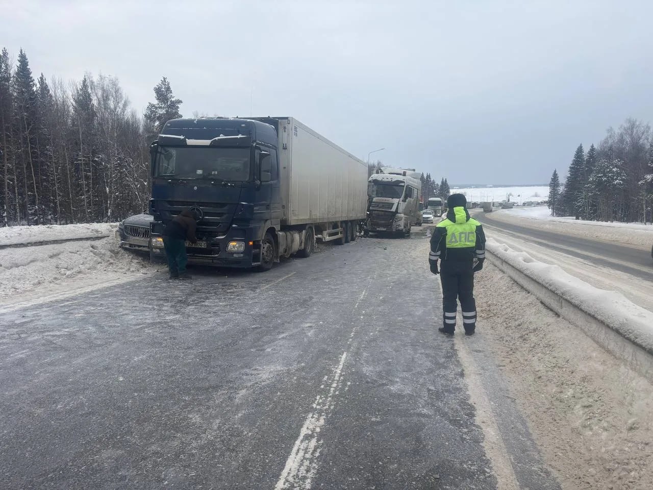 На Пермском тракте ограничено движение из-за ДТП с фурами