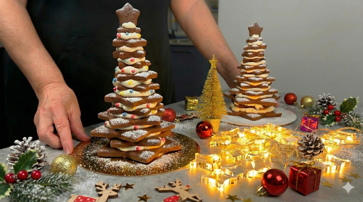 9. Украсьте елку кондитерской посыпкой и оставьте в холодильнике на 3 часа, чтобы печенье пропиталось кремом.