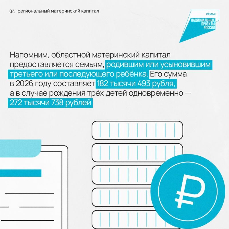 Глава региона в два раза сократил срок получения областного материнского капитала для свердловских многодетных семей. Подробнее в карточках