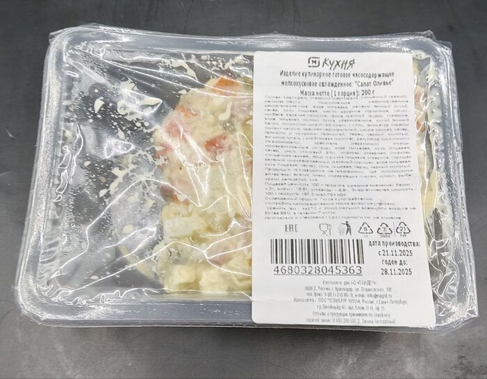 Из-за большего количества майонеза, салат выходит нежнее и вкуснее, чем его аналог в "Магните". Хотя состав практически идентичен, именно это различие позволяет ему занять лучшее место в рейтинге.