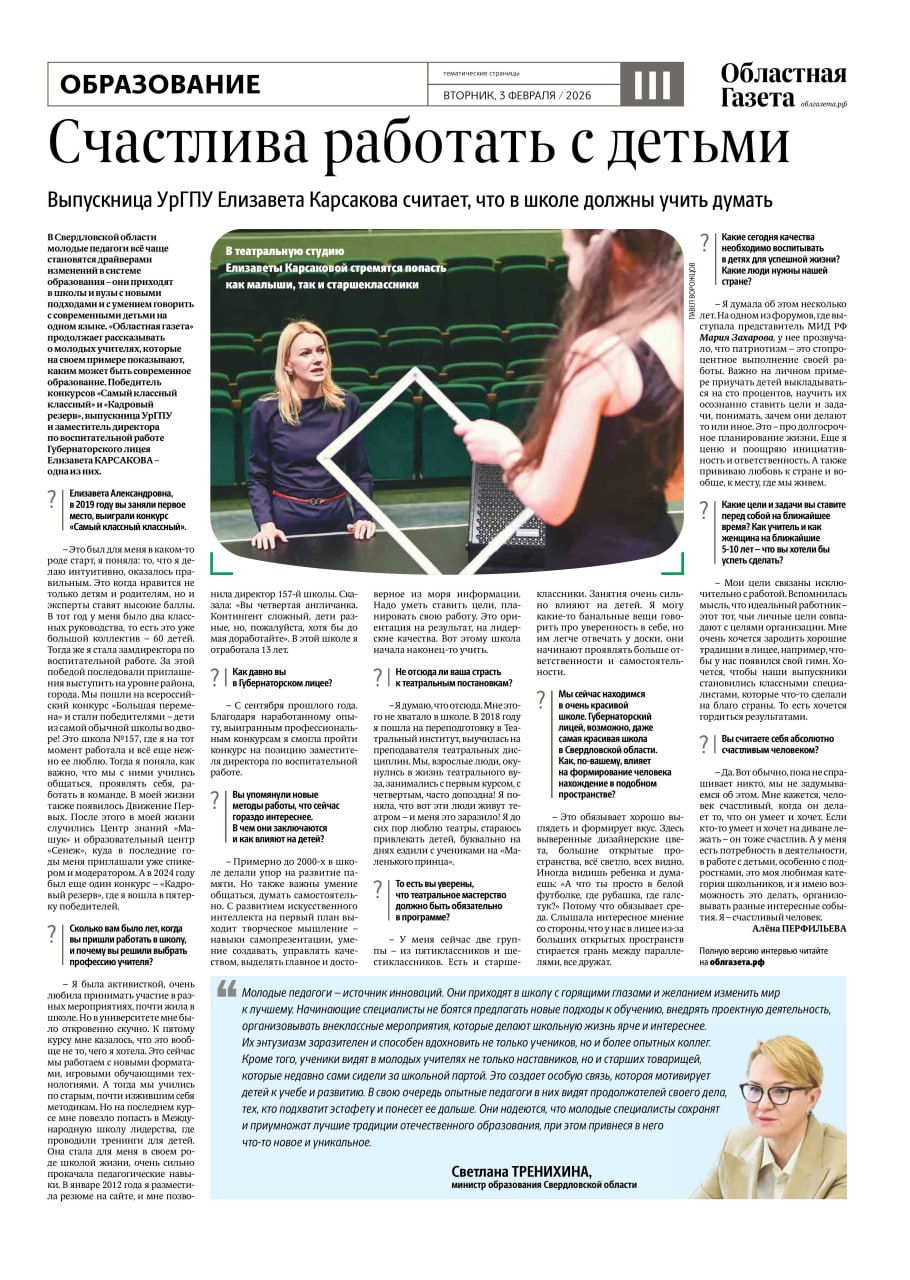Сегодня в новом номере «Областной газеты» вышли тематические страницы, посвященные образованию на Среднем Урале