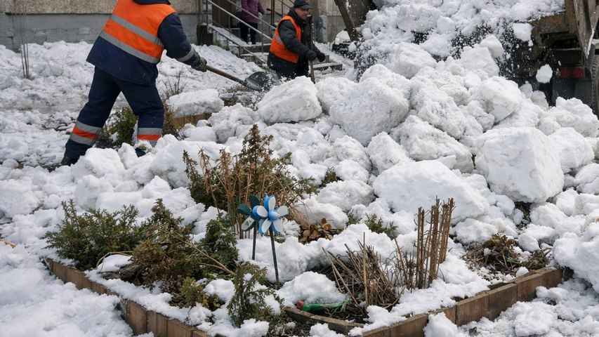 В Екатеринбурге, у дома на улице Ильича, рабочие управляющей компании при уборке снега свалили его прямо на придомовые клумбы и многолетние насаждения, высаженные жителями.