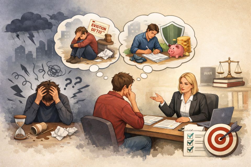 На консультации с юристом нередко приходят люди, которые не могут четко обозначить свою проблему или запрос. Это происходит не из-за недостатка ума, а из-за стресса и растерянности, вызванной недостатком информации. Чтобы облегчить этот внутренний хаос, можно начать с трёх простых вопросов.