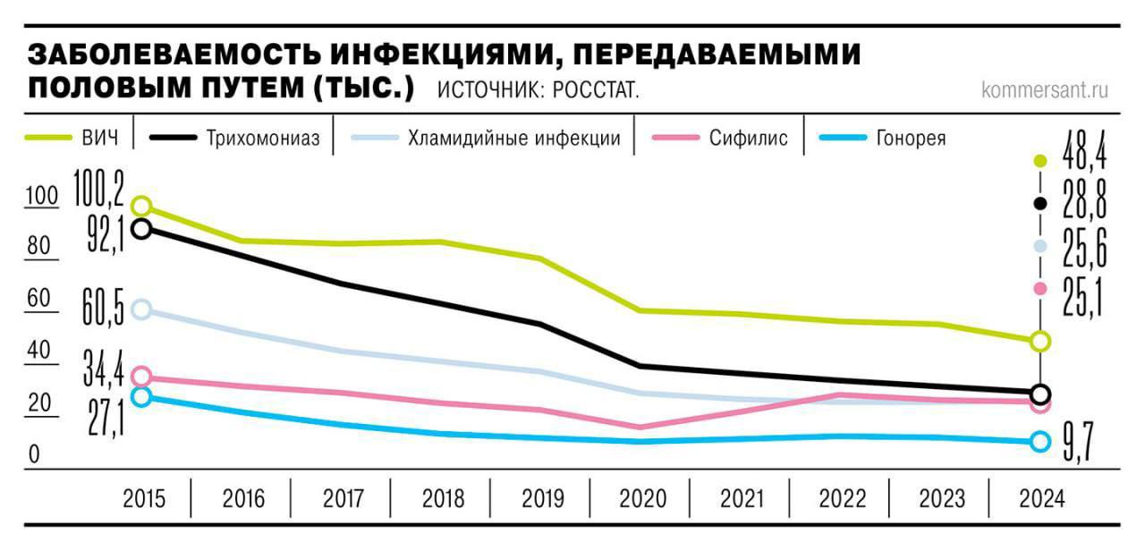 Сергей Колясников: Уровень заболеваемости сифилисом взлетел в России сразу на 63% всего за 4 года: с 15,3 тысячи случаев в 2020 году до 25,1 тысячи в 2024 году