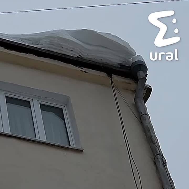 С крыши пятиэтажки в Екатеринбурге свисает метровый сугроб — люди боятся за себя и машины.