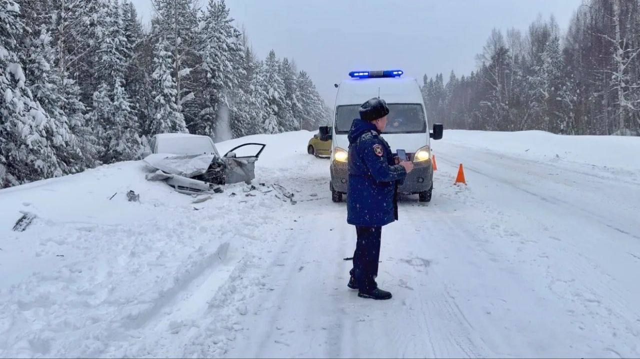 Авария произошла утром на 218 км возле Нижней Туры. По данным ГИБДД, водитель Toyota во время снегопада превысил скорость и выехал на полосу встречного движения. Там он столкнулся с Chevrolet.