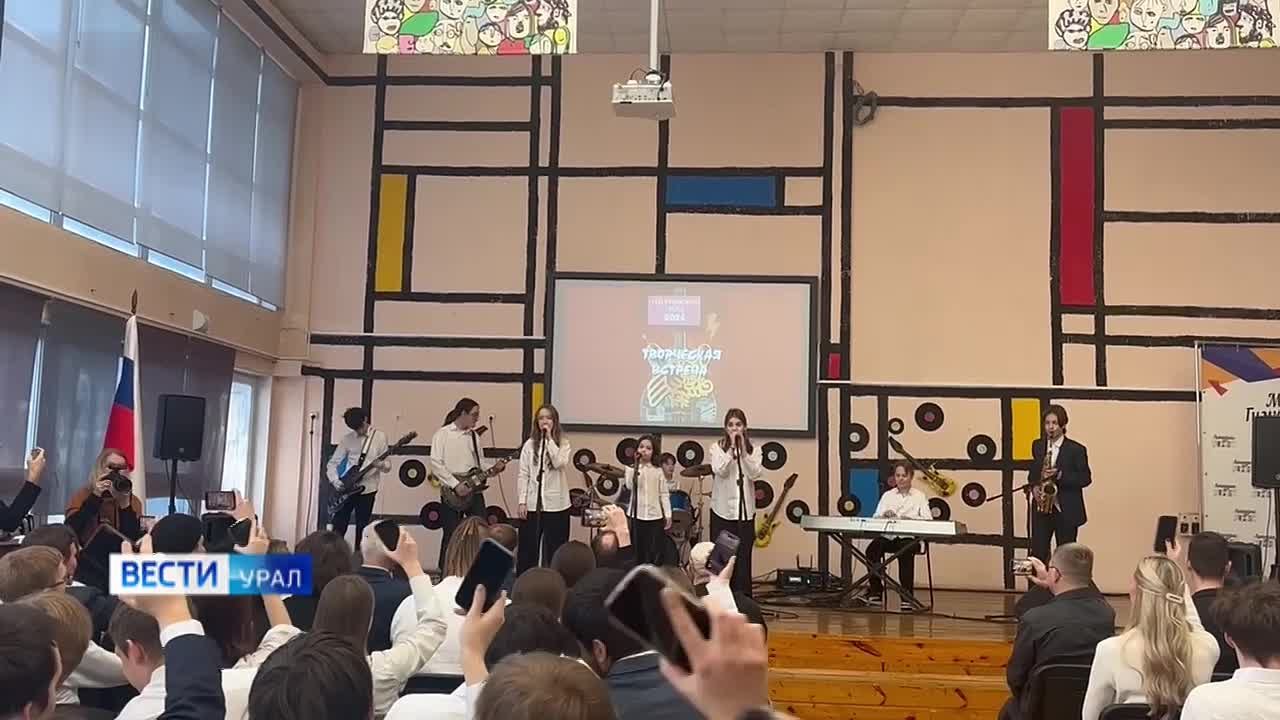 В 45-ой гимназии перед Александром Пантыкиным выступила новая школьная рок-группа, после этого дедушка уральского рока провёл музыкальный мастер-класс.