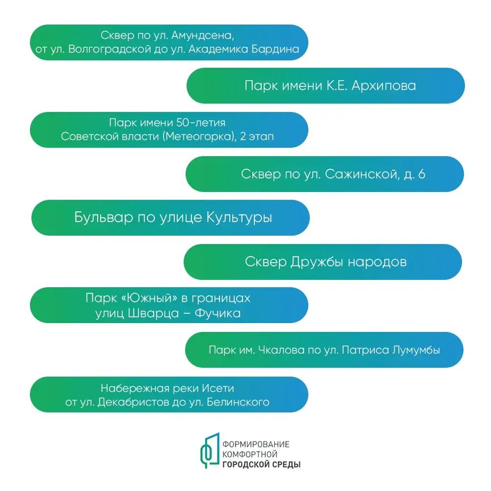 В рамках проекта продолжаются работы в парке имени 50-летия ВЛКСМ, а с наступлением тёплого сезона начнётся благоустройство набережной рек Исети и Ольховки.