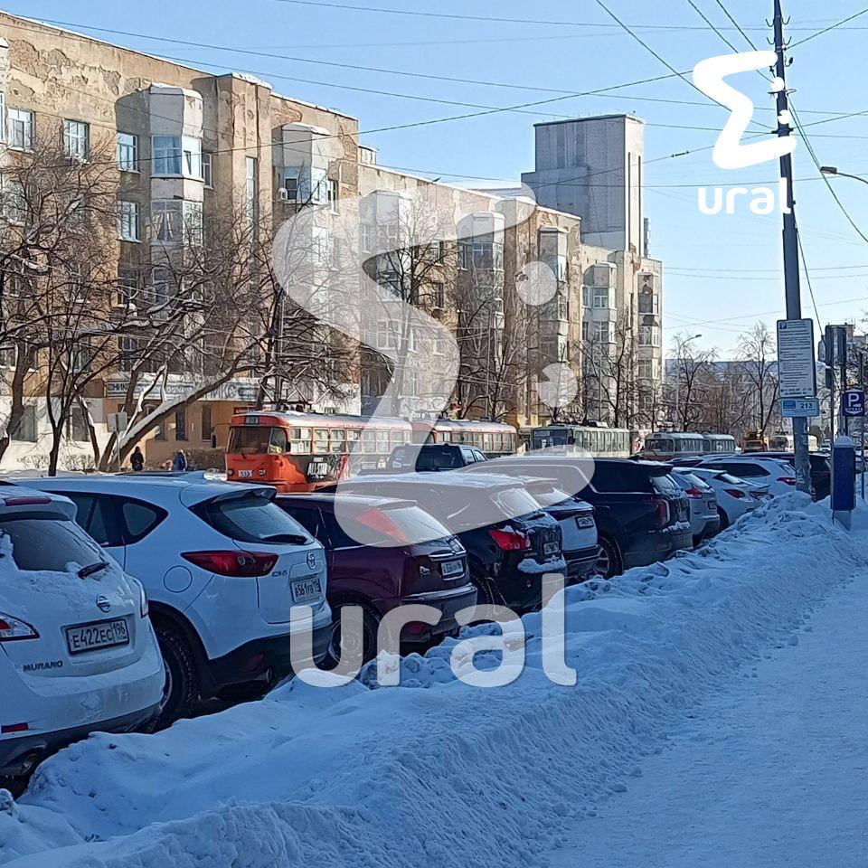 Трамваи встали в центре Екатеринбурга.