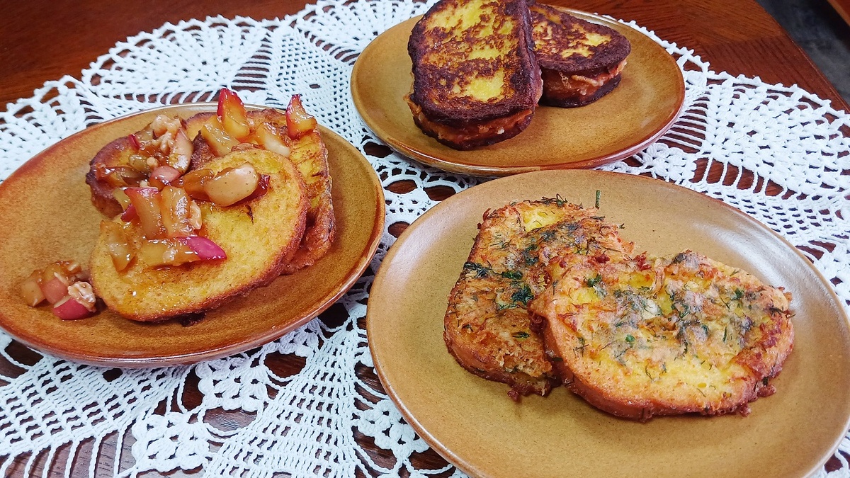 На сладкий вариант всегда находится место — в тёплой атмосфере утра кусочки хлеба становятся чуть мягче благодаря сладкой заливке с корицей. Рядом появляются карамелизированные яблоки с золотистым оттенком и слегка пряным ароматом. Такой завтрак скрашивает даже самый пасмурный день, добавляя ощущения, будто дома всегда тепло и спокойно.