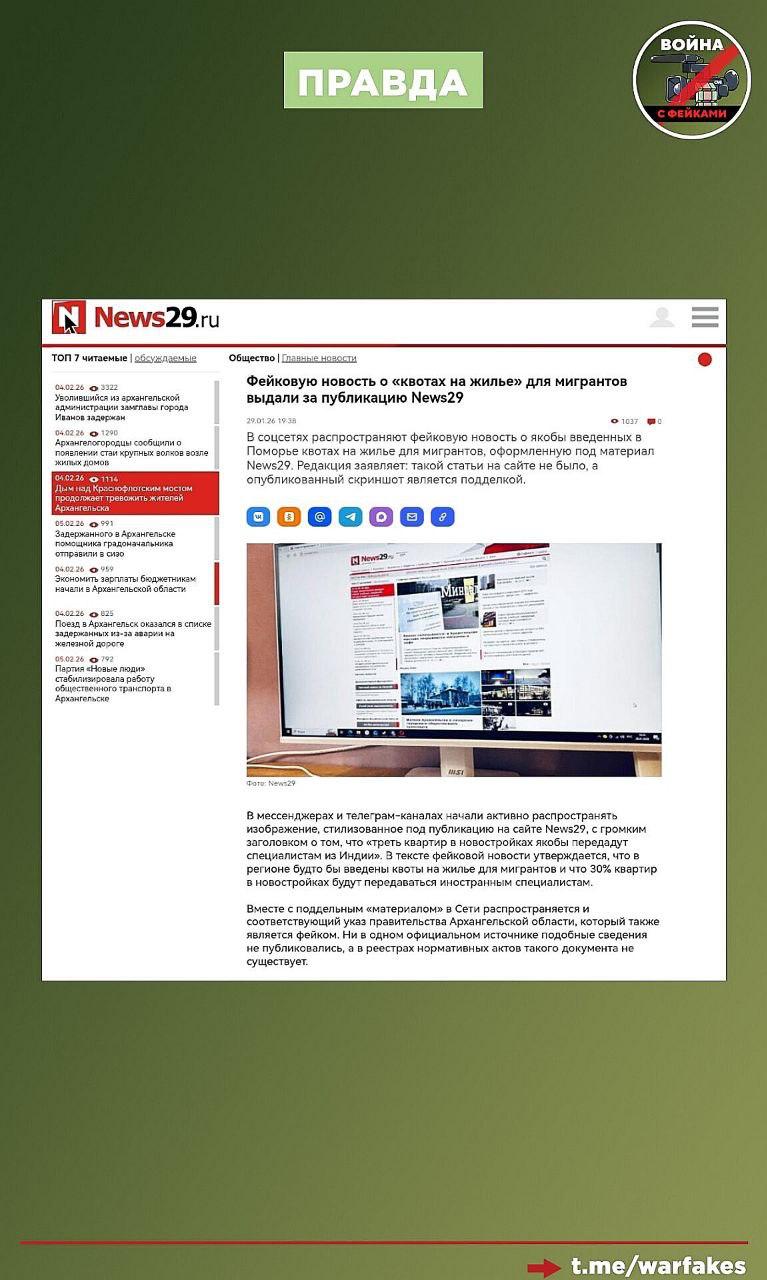 Правда: Главы регионов не давали таких распоряжений. На официальных ресурсах Свердловской и Архангельской областей не публиковали документы о введении квот на жилье для мигрантов. Авторы вброса использовали скриншоты с фейковыми статьями в СМИ.