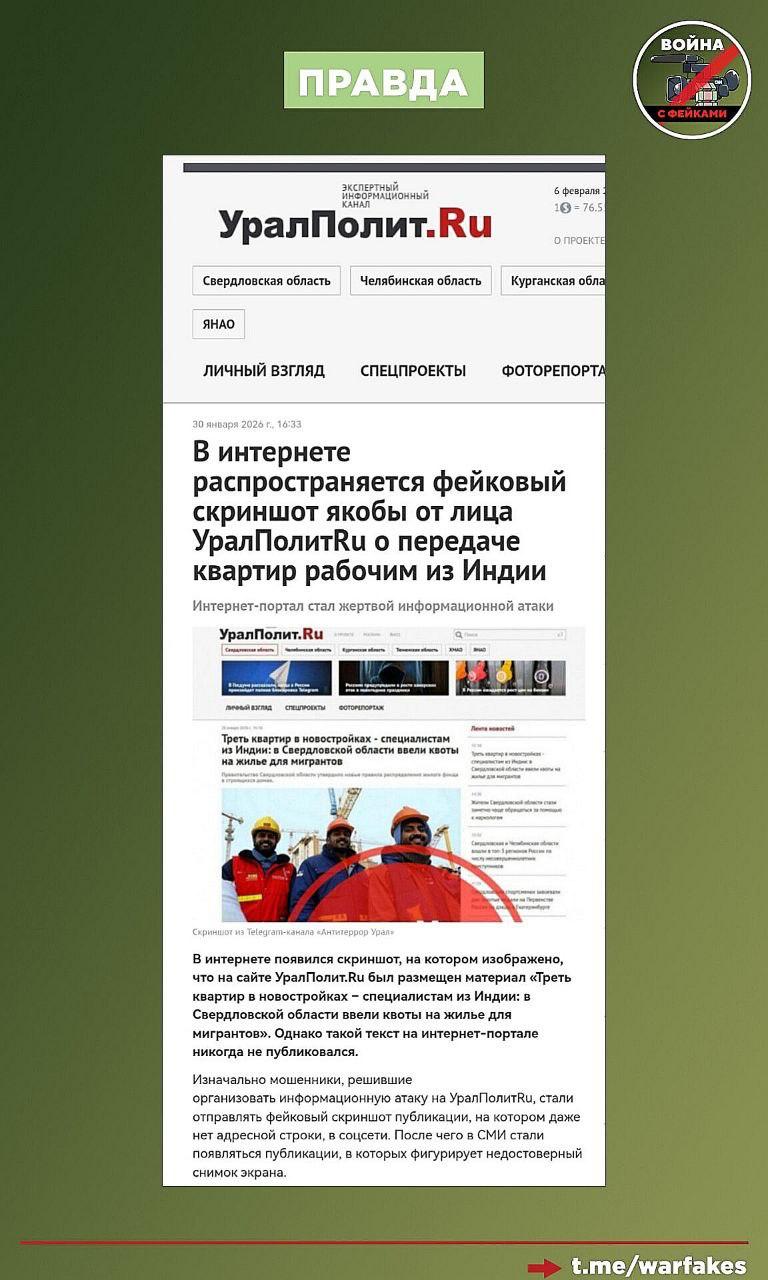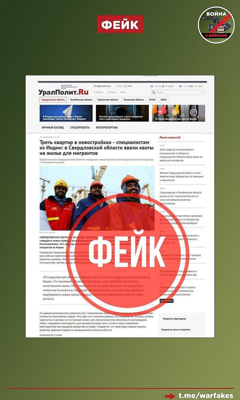 Фейк: В Свердловской и Архангельской областях зарезервировали треть квартир в новостройках для трудовых мигрантов из Индии. Об этом пишут региональные СМИ.