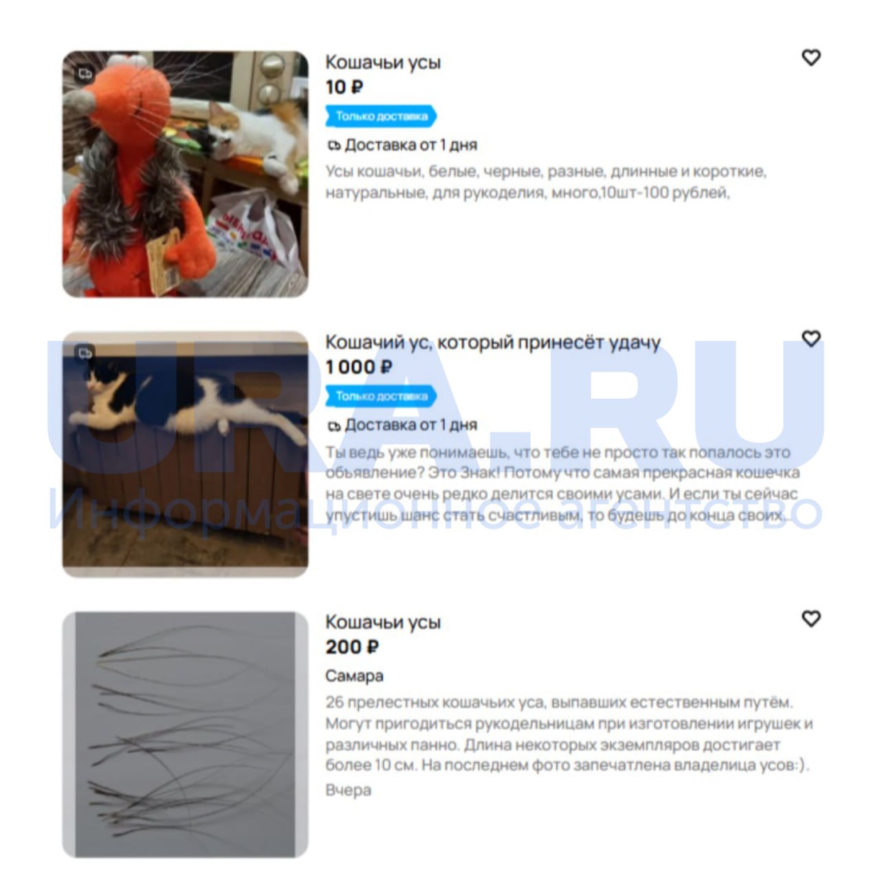 Необычный кошка-бизнес: на Урале люди продают усы своих четвероногих домочадцев. Объявления есть в Свердловской, Челябинской и Курганской областях.