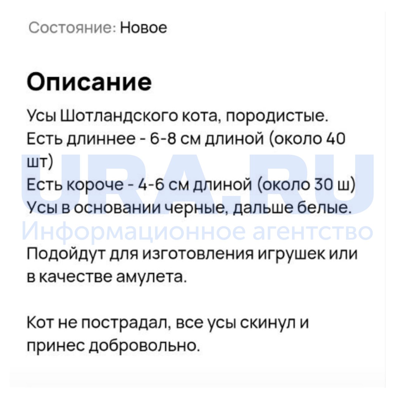 «Кот не пострадал, все усы скинул и принес добровольно», — подчеркивает продавец из Екатеринбурга.