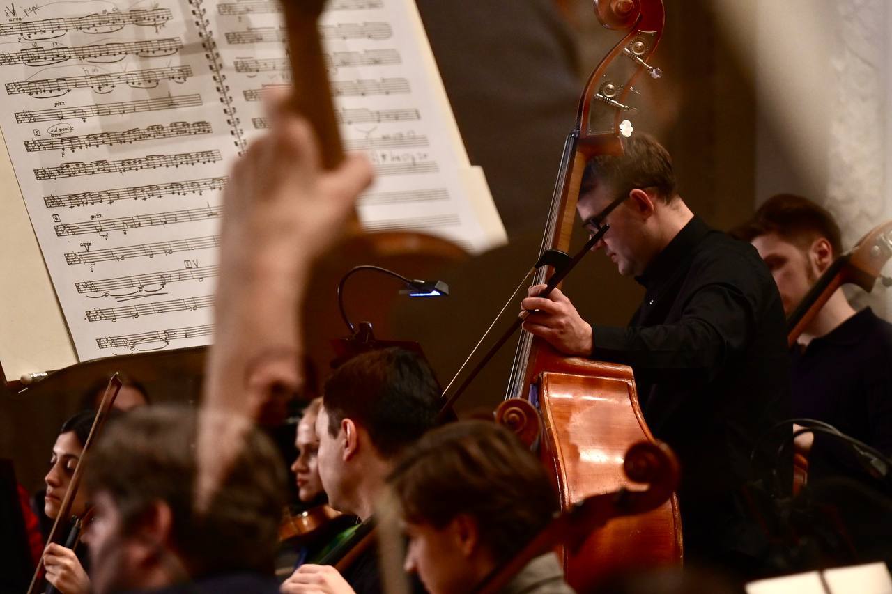 Участники спектакля – народный артист России Евгений Миронов и Московский государственный симфонический оркестр под управлением Ивана Рудина.