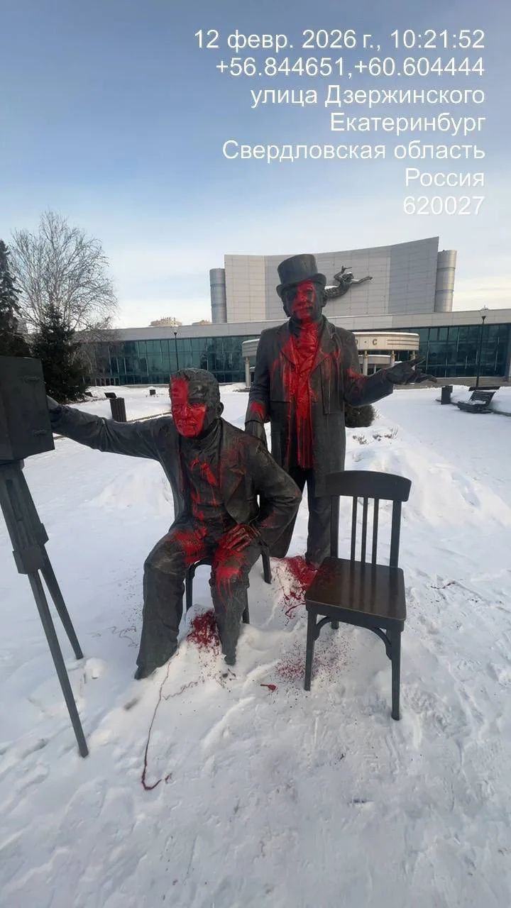 В Екатеринбурге залили краской памятник братьям Люмьер