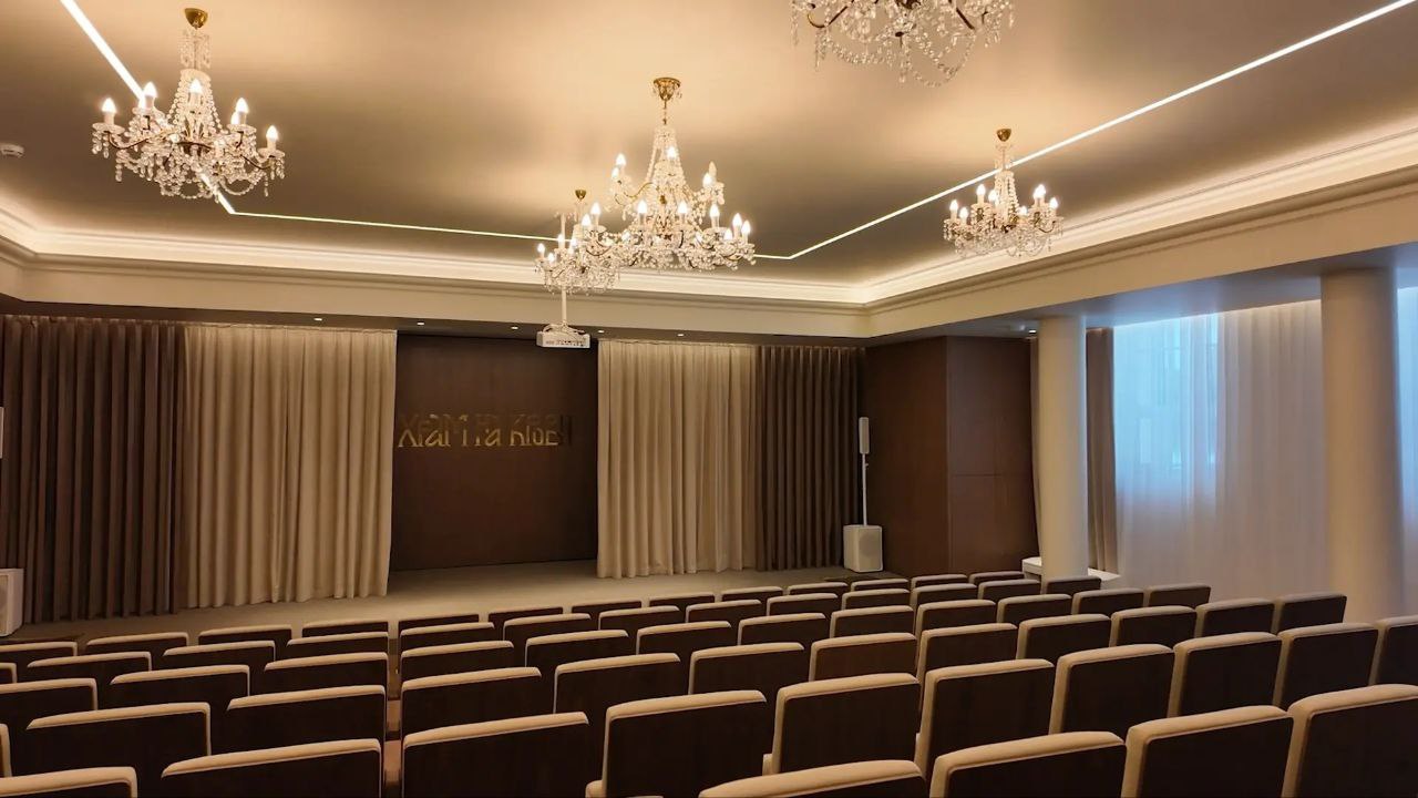 В ходе реконструкции в конференц-зале также поменяли мебель и одежду сцены, установили электронное пианино и оснастили помещение передовой мультимедийной аппаратурой: режиссерским пультом, проектором и экраном.