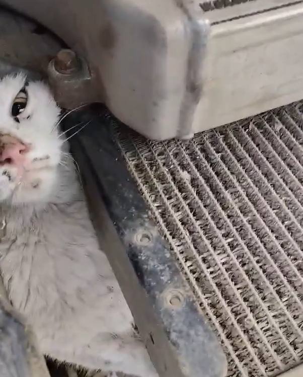 Водитель мусоровоза случайно обнаружил животное под двигателем автомобиля. Заметить кошку удалось отчасти благодаря тому, что мусоровоз двигался в частном секторе по маршруту бесконтейнерного сбора отходов, неспеша, от дома к дому, на небольшой скорости, собирая по пути мешки.